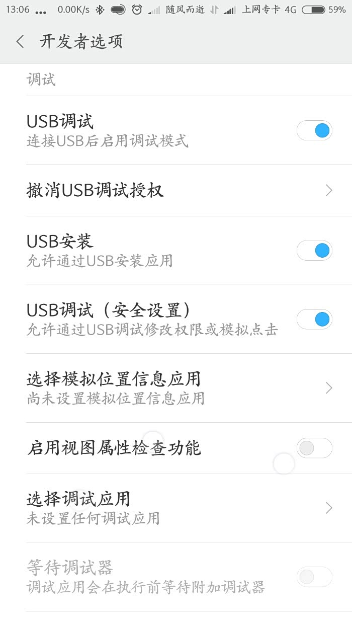 这个时候要注意了,USB调试和USB安装都需要打开。因为接下来我们需要通过USB安装一个互联助手。很多车友连接失败,往往就是这个地方出错了。接下来就是,把手机连上数据线。