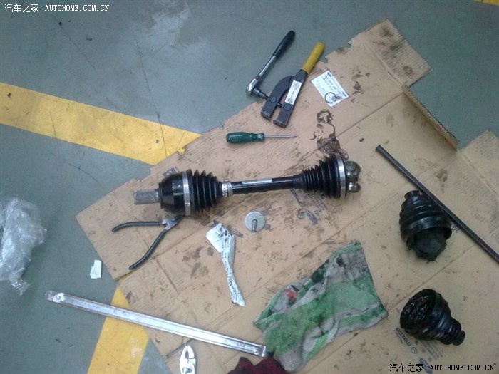 本来我以为换这个是很容易的事,没想到这么复杂,这么暴力~我的车是左前轮渗油,就需要拆左轮的传动轴,传动轴的一端是连着变速箱的,很难拆,而且拆的方法只有一个,用撬杆蛮力撬。先上图