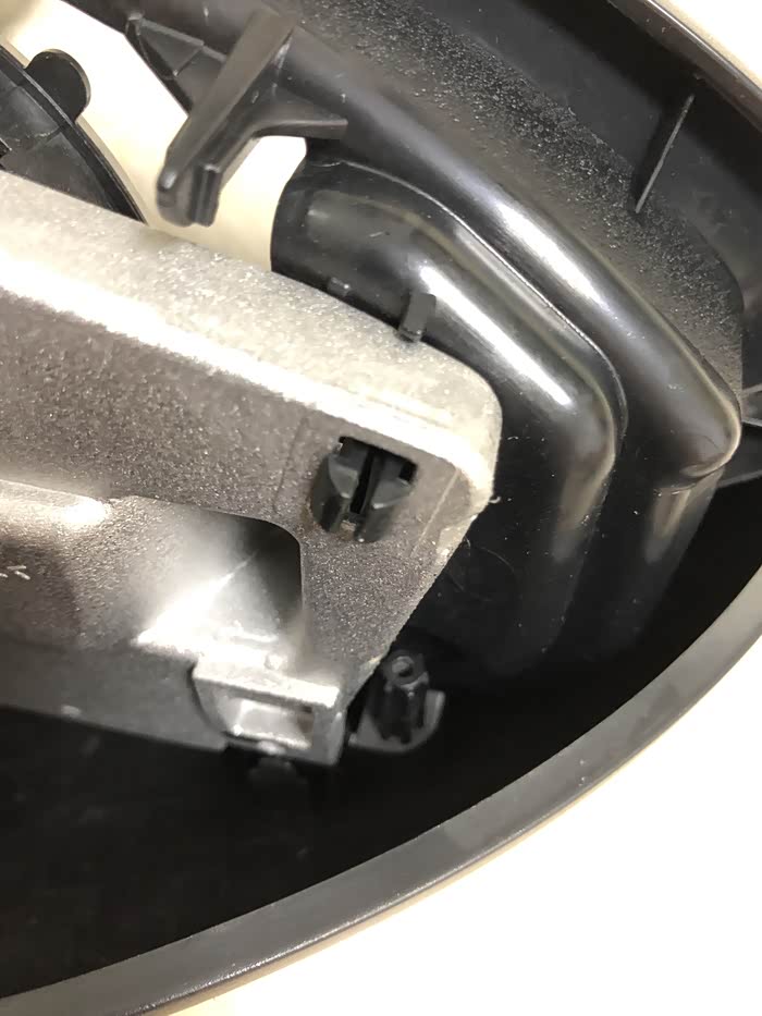 2、后视镜壳一定要先撬开卡扣再扳,否则卡扣很容易断!切记!