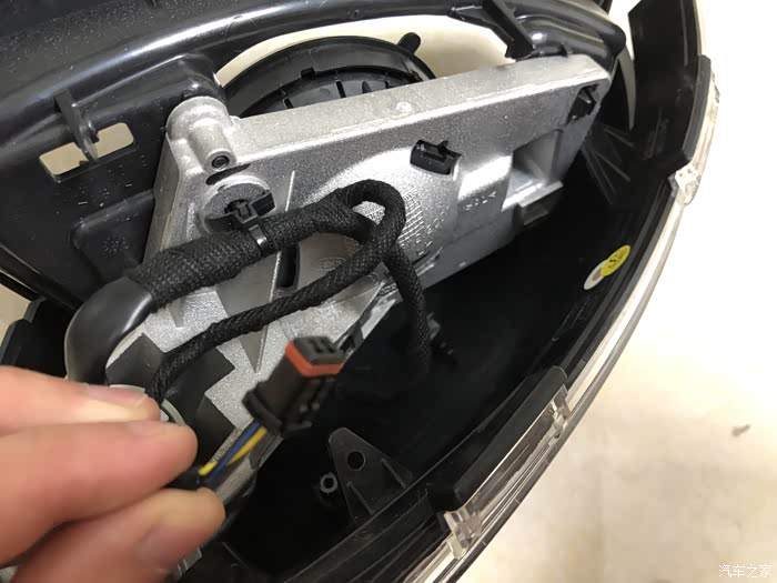 转向灯主要由两个螺丝固定,拆除螺丝后扳一下外壳,拔出线束接头即可拿出灯条,注意螺丝不要掉下去,否则卡住的话很难拿出来。