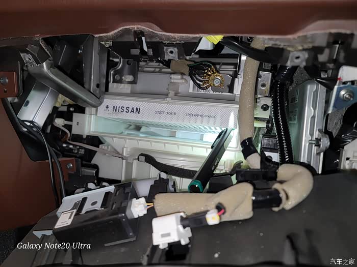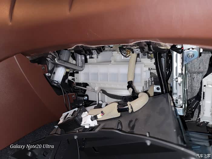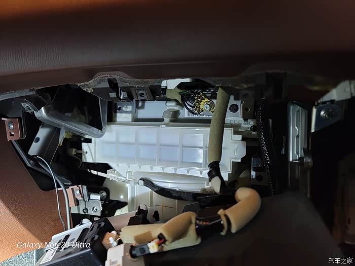 8、更换完后,装白色空调盖板、装黑色的隔板、装阻尼线、装手套箱、装侧板。