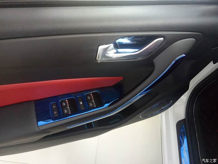 打开车门,能发现加了不少蓝色镀铬饰条