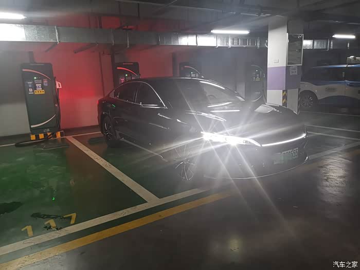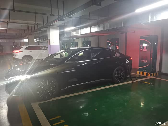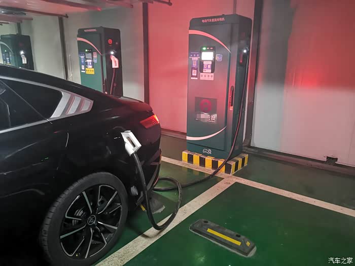 一般我电到百分之30就会去找充电桩了,打开手机APP搜索一下充电桩,就出现很多选项,选了一个最近的,这边是一个地下充电站,我们开车进去充电,里面还是很宽敞的,有好多充电的桩子,我下去的时候,里面已经有好几个车在充了,还有的士在充电,不需要排队,可以把充电桩插在里面,直接扫码就可以充了,方便许多,在车里面玩会儿手机,充的差不多就可以继续开着走了。