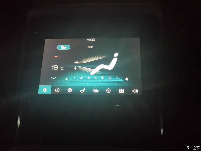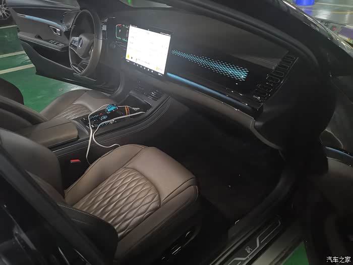 后排扶手中间有一个操控屏,可以控制空调的风力,后排可以形成一个独立的小空间,还笑我说一边充电一边开空调,不知道这个电什么时候才能充满