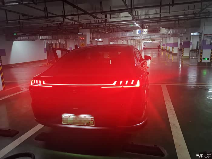 进入地下车库灯光有所变化,不过这个车子的灯光真的很晃眼,感觉特别犀利,里面的几个蓝色的小灯光是点睛之笔,贯穿式的尾灯也好看,我在车里面放音乐,车身的氛围灯还会有所变化,门把手旁边也有灯光闪烁,车里面的灯光都点亮了起来,各种键位也方便找,操控起来更简单一些,不会摸黑找不到位置。