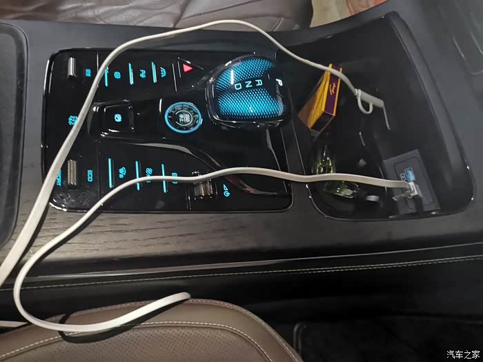 操控键位上面都有灯光亮起,这样就不会摸黑操控了,一切都看得很清楚,烟和打火机就放在了杯架的空格处,乘着这个机会,还可以手机数据线充一会儿电。