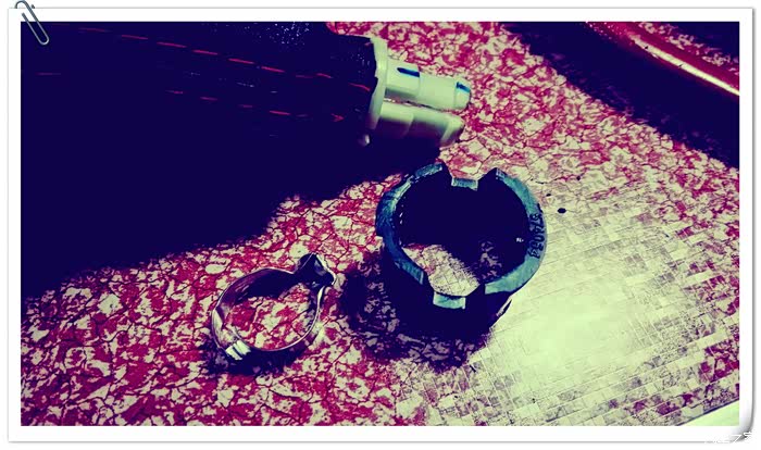 分解如下。皮子是靠中间那个塑料卡箍固定在挡头上的。这个比较难拆,得一边一边用平口螺丝刀撬。