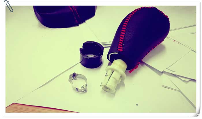 去淘宝找了找,海景原车的革的带底座的要快40元,皮的就更不用说了。我拆了档排研究了下,防尘皮和框架粘结是用胶水的,框架没有坏没必要买带底座的,而且大部分防尘套都是通用的,还有海景的手刹是没有防尘皮罩的,也很OUT,不如这次一起装上,于是在淘宝上找到了中华骏捷用的档排和手刹防尘套套装,才20元一套,(买的仿皮的,革的更便宜5元,真皮的贵些是65元左右,革的3年就差不多了,仿皮的大概能5-6年,真皮的估计10年也没问题。真皮太贵,革的太差,就仿皮的吧。经济实惠才20元哈哈哈)。