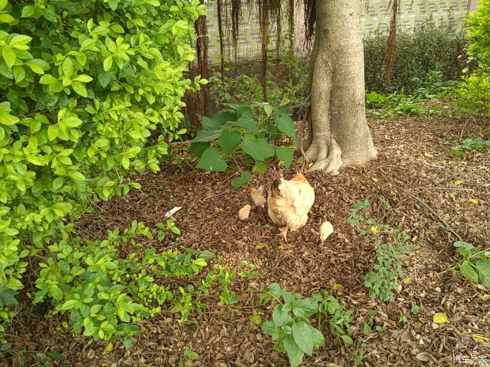 母鸡带仔,看到这个情景,不由的想起小时候玩的“老鹰抓小鸡”的游戏