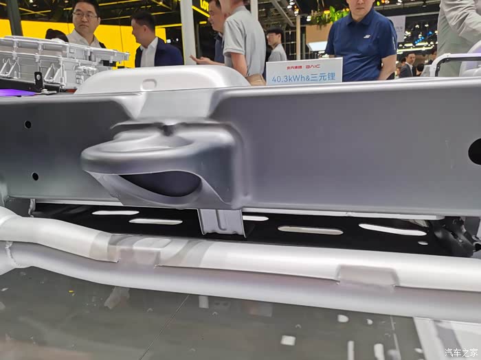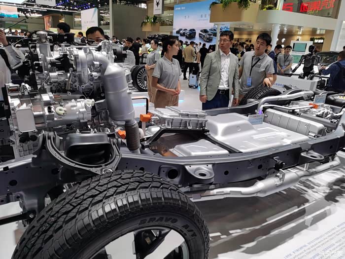 BJ60e的电驱底盘,全新开发的魔盒高效补电系统,配合自研三元锂电池,电池外壳也设计的抗冲击力为2.5吨,并且是悬浮设计,安装在车身大梁上方。安全性高,通过性好。