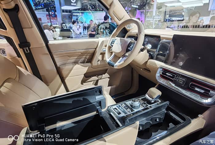 BJ60e内饰中控台采用了和新款40相同的设计语言,空调摁键设计,还有大号的中央连屏,车辆行驶中副驾也单独观看视频。