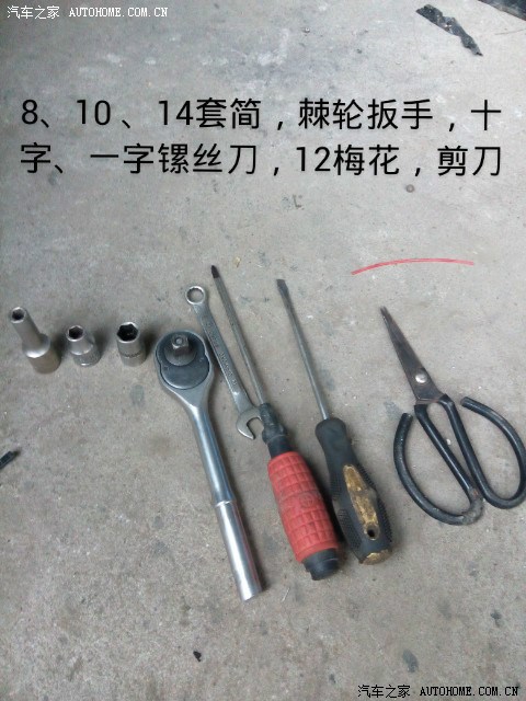 10套筒拆线束和管路固定支架时用到, 14套筒和12梅花拆发电机是用到; 8套筒和十字镙丝刀解体时用,一字辅助;剪刀对付扎带