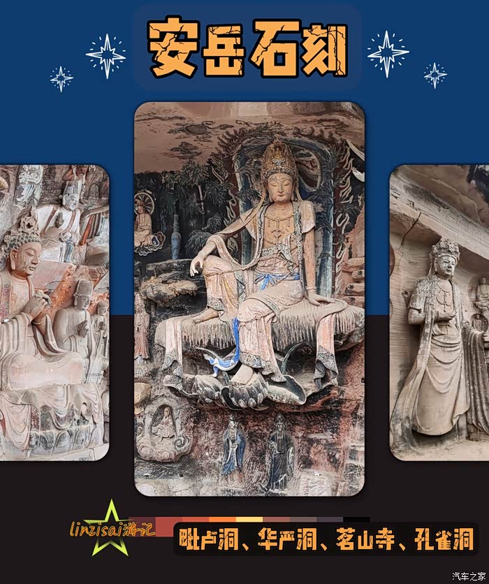 新年里无事,便想着出门。去哪里呢?热门景点人太多,不去,就附近吧!这几年自驾出游,总是想着诗和远方,遗漏了家乡门口不远的景点——安岳石刻。听说这是天命人的必去打卡地(主要是免门票哈哈),据说有座水月观音,又称紫竹观音,为国内罕见宋代石刻精品,被称为″东方维纳斯″。只是安岳石刻景点分散,走起来比较麻烦,不过,现在有我家大灰,怕啥呢?趁着春节里高速免费,还有3月底前安岳石刻景区免门票,两项加持,正好,走起!