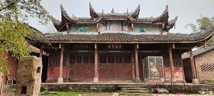 这寺庙,当地人说是报国寺。还指给我看大雄宝殿后面墙顶上,有岳飞报国的彩绘像。