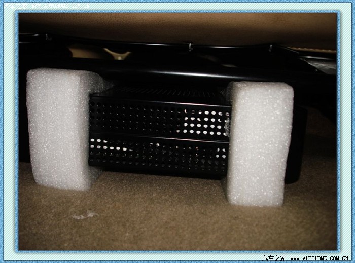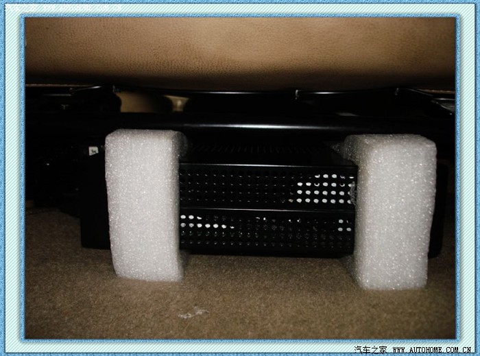 8)包装主机的泡棉加工一下套在两端,是固定主机的最好方法,无需伤车打孔或者制作专门的夹具,副驾座椅刚好夹紧!减震也好啊!