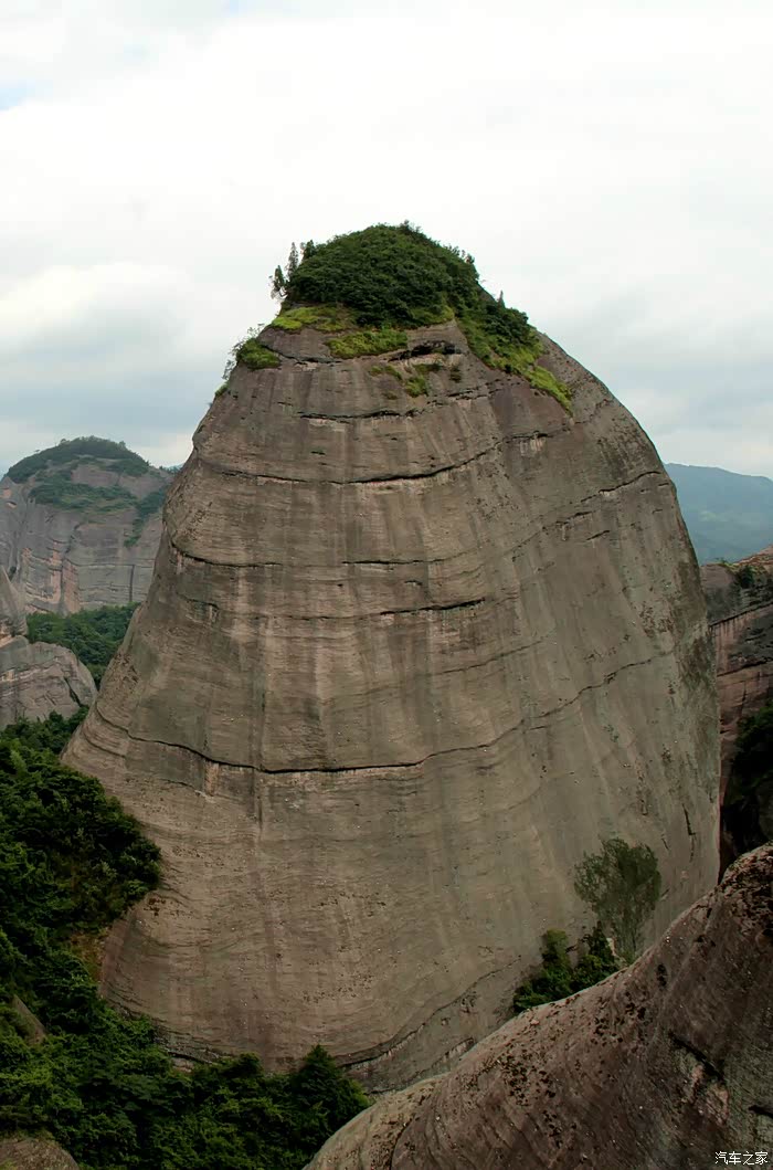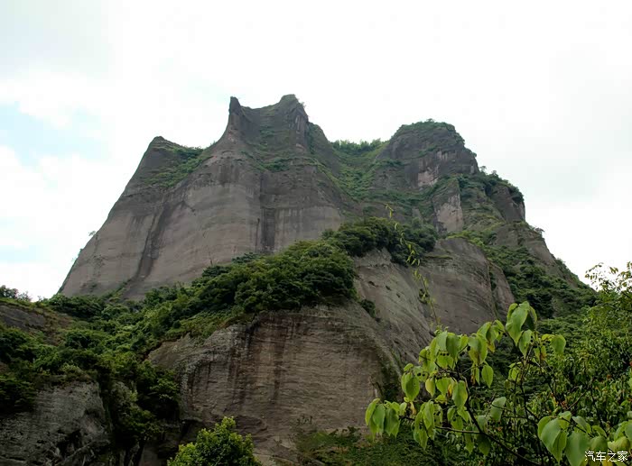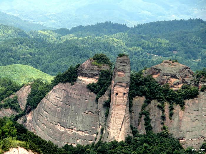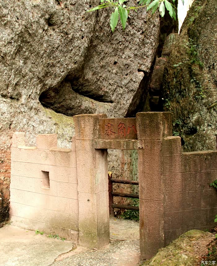 新宁红层盆地的主峰——八角寨,为方山形地貌,海拔814米,相对高度约400米,东、西、北三面为光滑有形的悬崖绝壁,登上山顶后有一种横空出世的感觉。