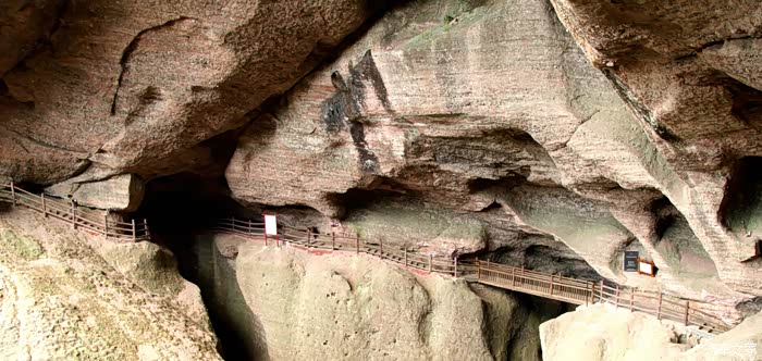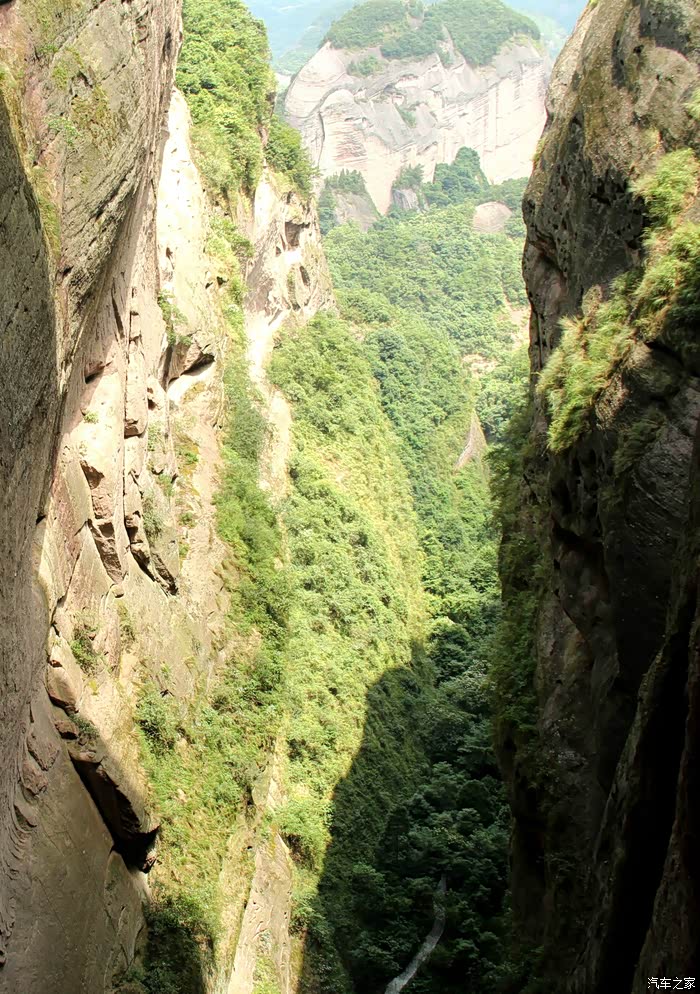 形成于距今1.35至0.65亿年间的白垩纪地层呈单斜产出,而山体因流水、崩塌等作用一般发育有陡崖,坡麓则接受堆积形成缓坡,因而造就了本区丹霞地貌的“顶斜、身陡、麓缓”的基本特征。资源丹霞地貌发育有众多的幽深巷谷、障谷地貌,如天门景区的东、西一线天,八角寨景区的生死谷、黄沙江狭谷等,特别是狭谷、障谷,置身其间,就象进了一座迷宫似的,两侧高陡奇特的石壁,谷中奇花异草,流水潺潺,百里无人,有一种超凡脱俗、幽深奥美,仿佛进入世外桃源的感觉。