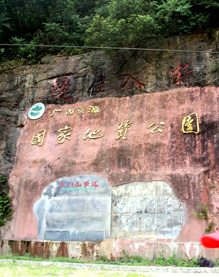 广西资源国家地质公园南起资源县城,北部、西北与湖南省新宁县交界,南北长33公里,东西沿资江及资江两岸分布,宽3-9.6公里,总面积125平方公里。地质公园以丹霞地貌为特点。
