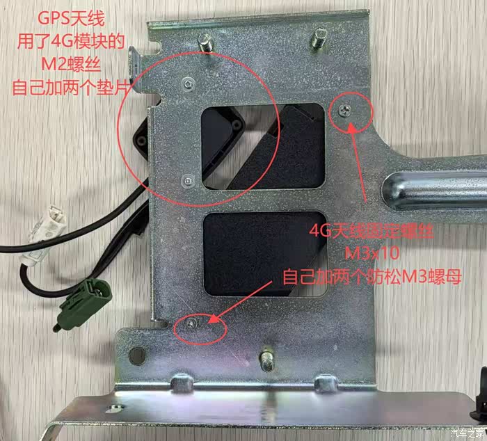 仔细观察,发现3G支架上留的孔,可以把4G天线和GPS天线装上去,不过得自己准备多几样东西: