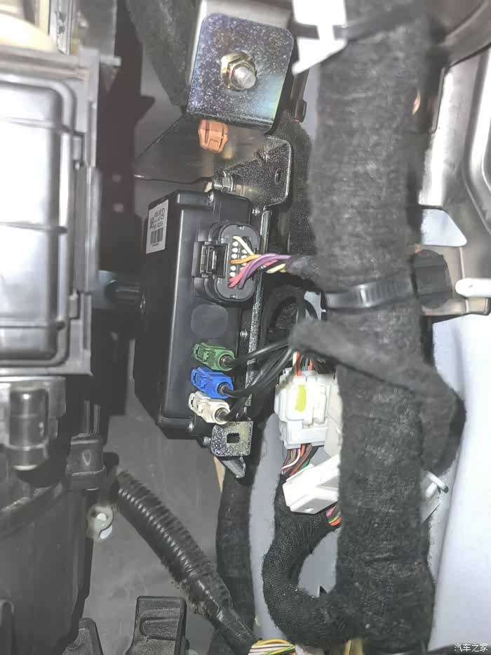 拆开手套箱,就可以看到右前方,A柱下方的3G模块。