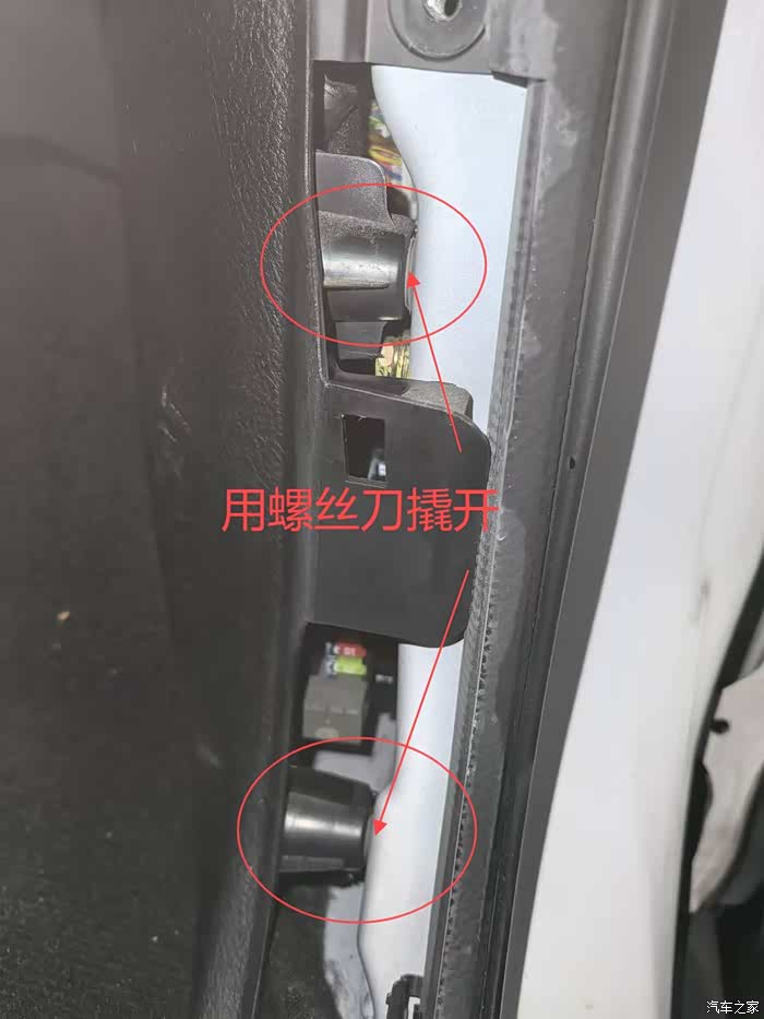 保险盒位置在副驾右下方,需要打开塑料护板。在副驾座椅右下方,用螺丝刀开始,往A柱方向撬,小心打开。