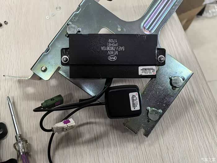 但是我研究了半天,愣是没有找到一点可以替换的可能性。因为这个4G模块不是给唐设计的。应该是从别的型号的车上拆下来的,卖家就没针对老唐改一下支架。