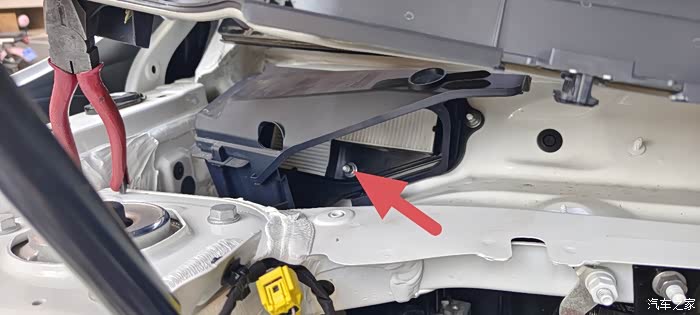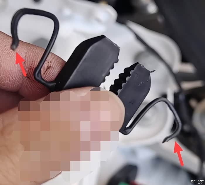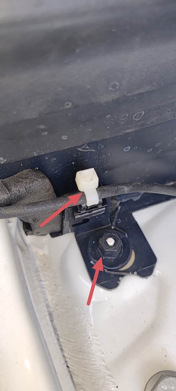上面红色箭头的是我后装的原来是黑色的扎带必须要拆掉才能拿出来线。下面箭头的螺丝也得扭下来,这个螺丝是塑料的而且旁边有线你一拆就能看出来!
