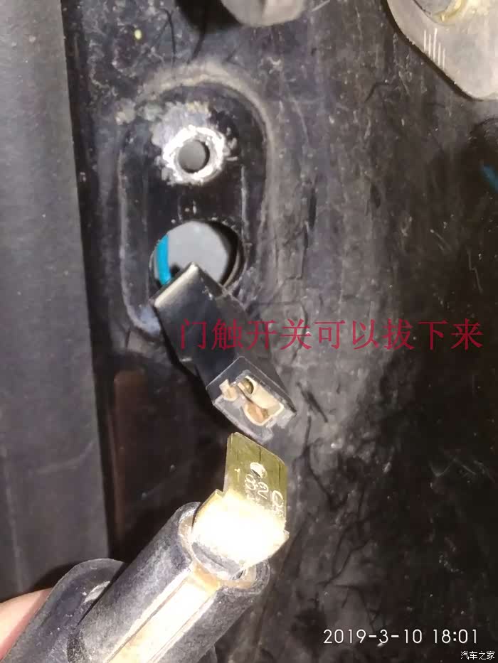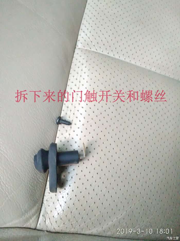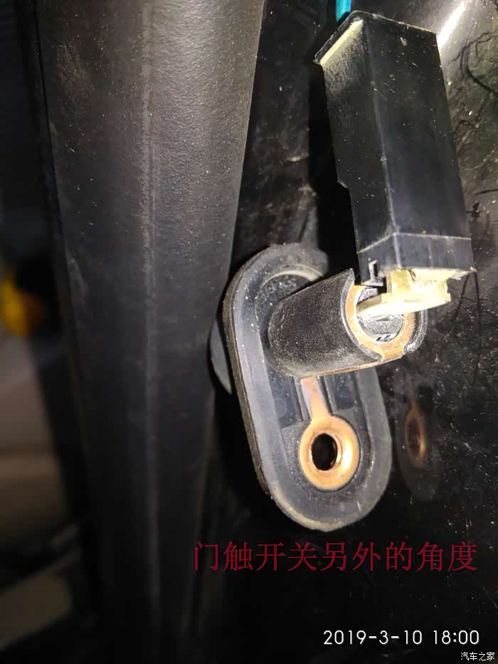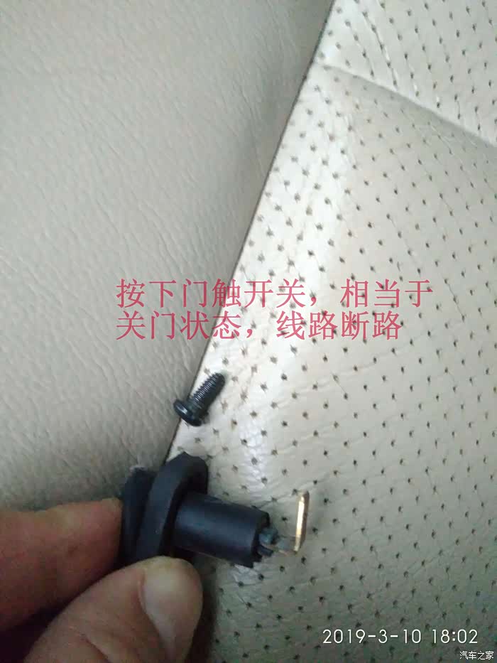 上次出现这种情况后,我处理了门接触开关,问题解决,但最近又出现同样的问题,拆开发现是门接触开关的螺丝搭铁出了问题,滑丝了,也就是说门接触开关线路无法正常通过螺丝搭铁接地。