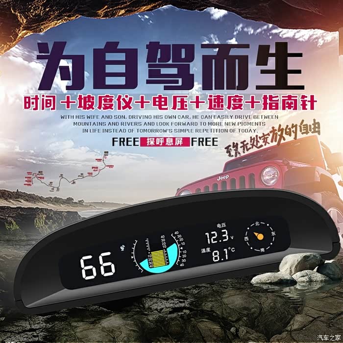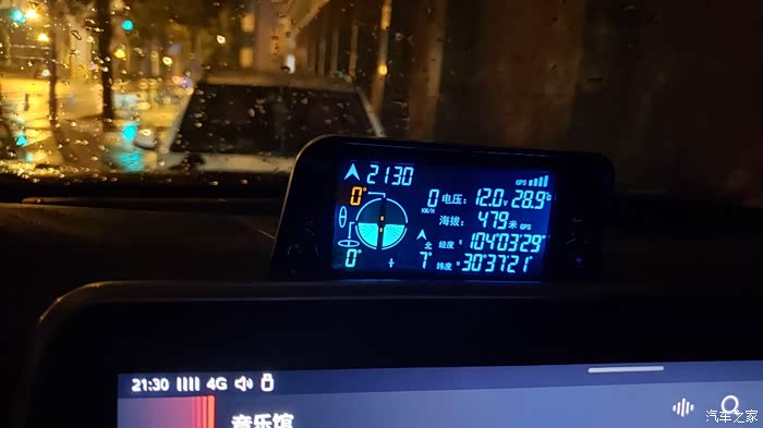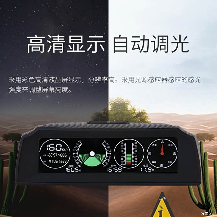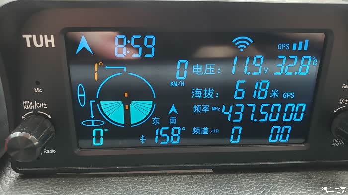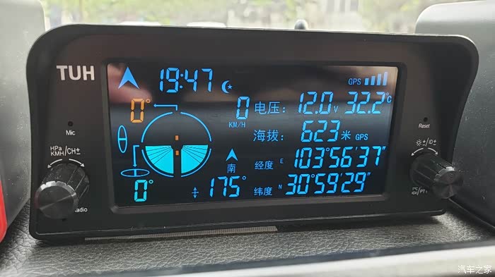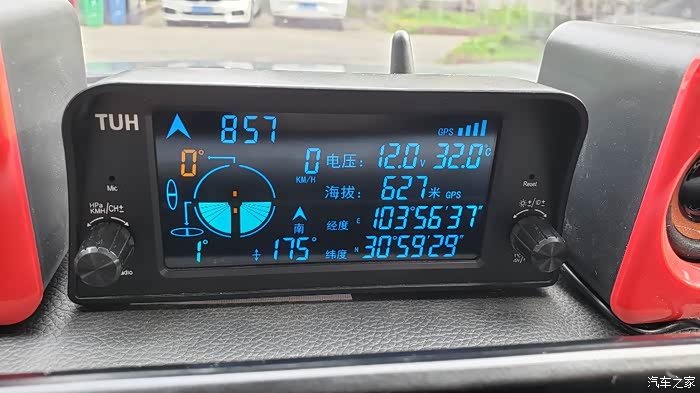 实机显示效果。黑底蓝字无论白天夜间都很清晰,坡度和倾角特意做成橙色和绿色。所有数字大小一致,阅读无压力
