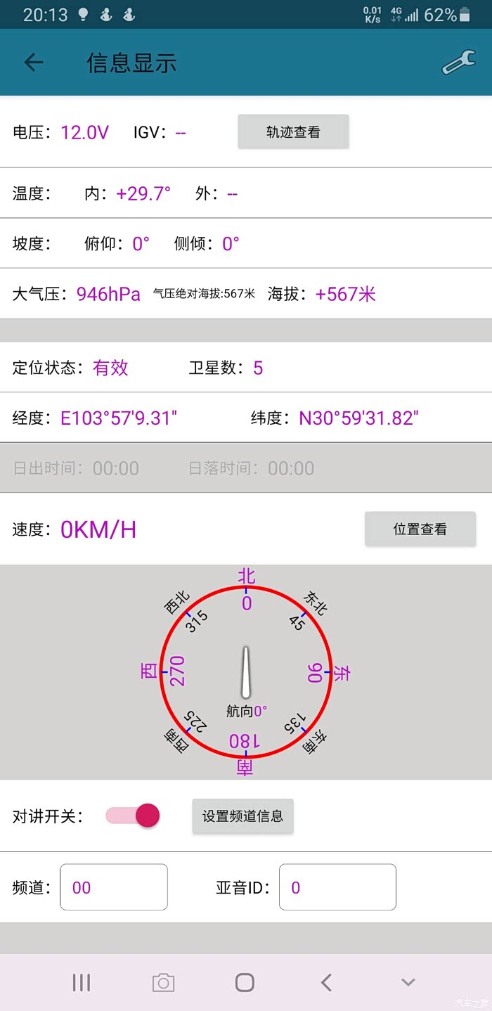 坡度和倾角的显示虽然也很准确,但有时会有延迟,爬上坡了几秒钟才坡度出现变化。