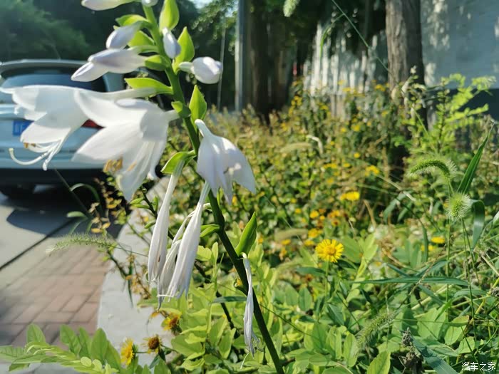 旁边的一朵小白花,为这个春天增加了更美的颜色。