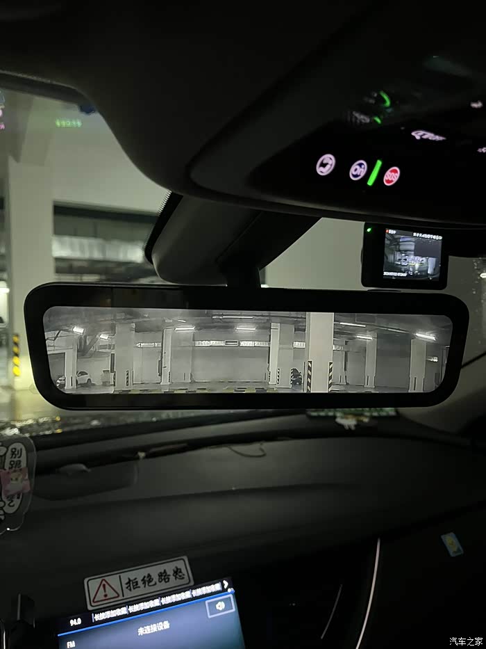 流媒体后视镜在车库,光线暗的情况下,显示效果