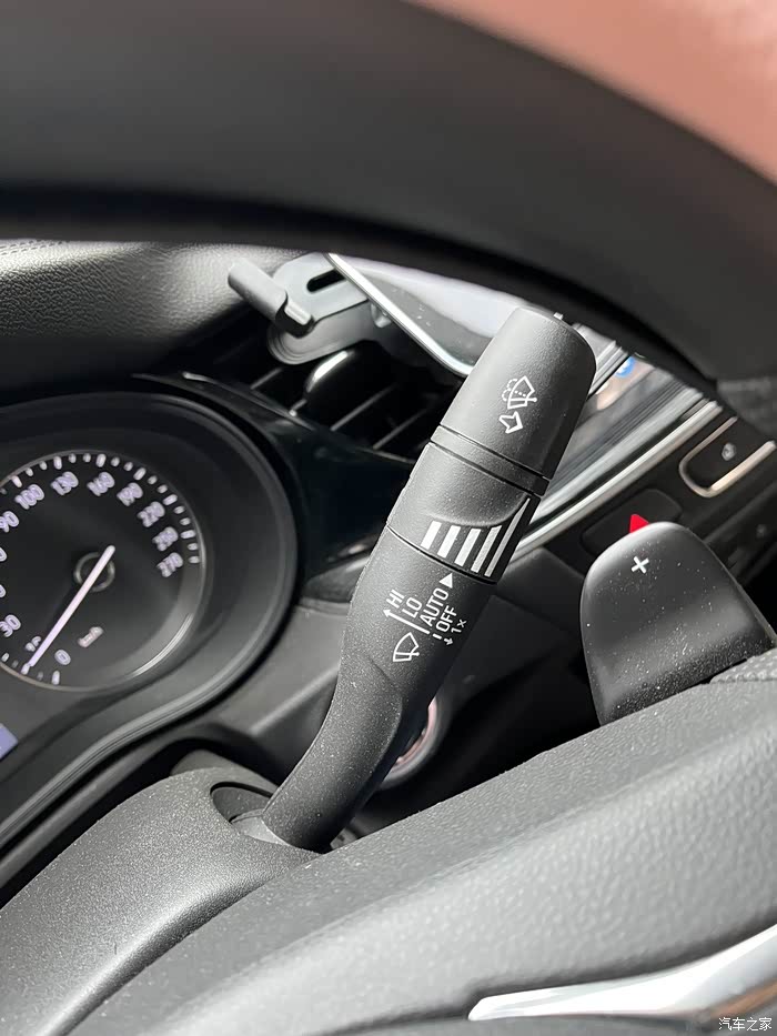 实不相瞒,我这里的雨,已经下了半个月了,每天冒雨出门,有了雨量感应式雨刮器之后,感应器会自动感受到雨滴落在挡风玻璃上,就会自动开启雨刷,这半个月的使用感受最深刻,用着很方便,如果不喜欢雨量感应式雨刮器,可以关闭,右侧的雨刷就是雨量感应式雨刮器的开关,往上掰一下雨刮器,就是打开这个功能,往下就是关闭。