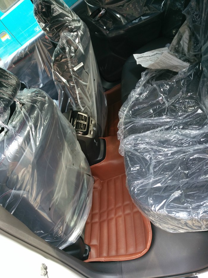 脚垫和后备箱垫都是店里送的,好像很廉价!但是挺合适!看这保护膜让我撕了好久都没找到窍门,刚怕把漆面弄花,然后在网上查怎么撕掉车身保护膜,网上竟然没有,这万能的网络,失望!