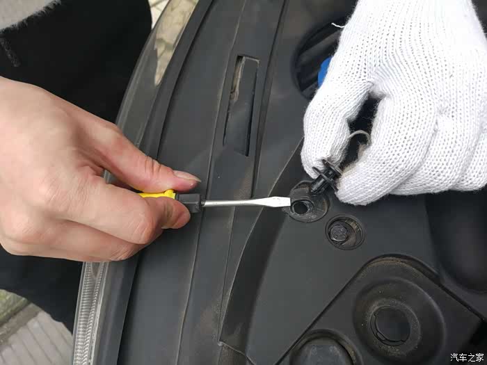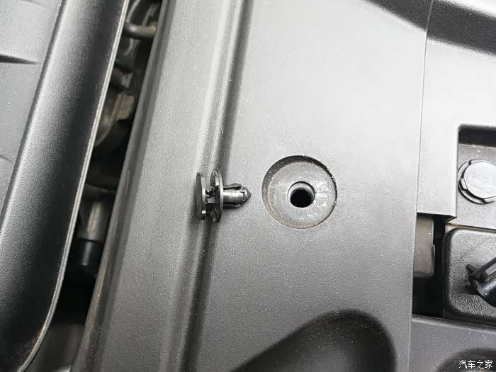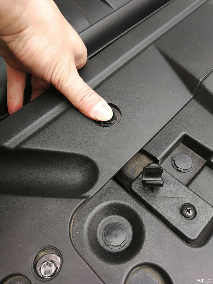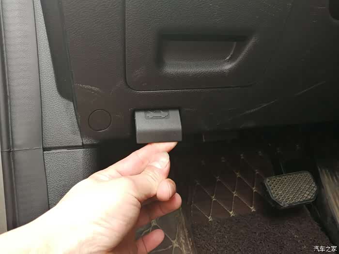 第一步,先打开发动机机盖。这里我要普及一下,许多新手往往车都开了大半年了,还不知道发动机盖怎么打开。在主驾驶左侧下方,扣一下就好了。