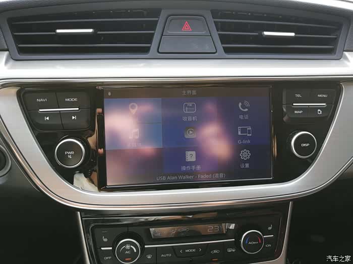 八英寸的中控大屏。中国人喜以大为荣,八英寸的屏幕中规中矩,幸好显示效果比较清晰,功能也比较丰富。