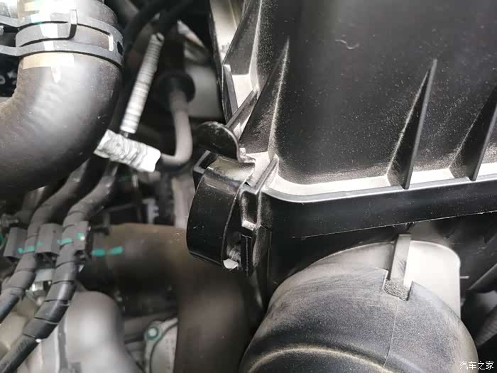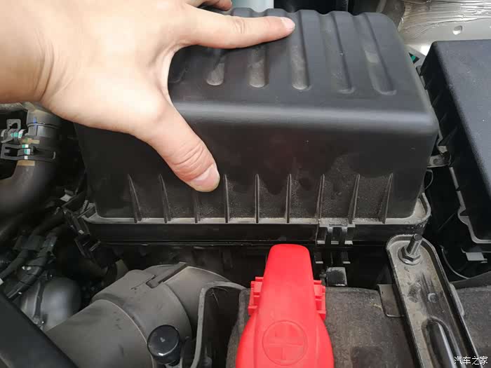最后一步,把空气滤芯的盖子重新盖好,装这个盖子的时候,也一定要观察一下看是否卡到位。卡到位之后四周基本上不会有什么缝隙,如果没卡到位的话是会有缝隙的。通过观察,如果这个空气滤芯盖子已经卡到位,把卡扣上紧即可。