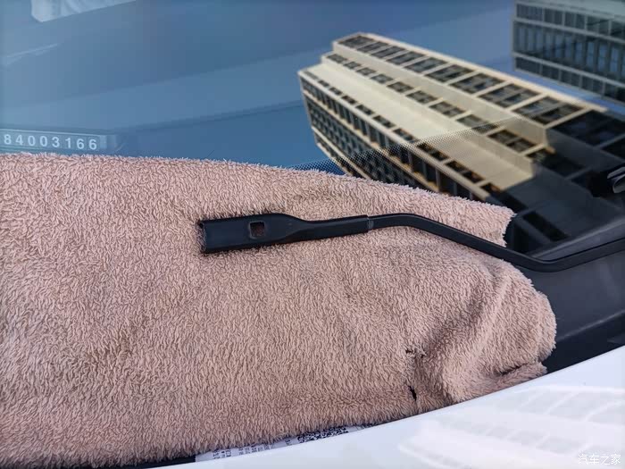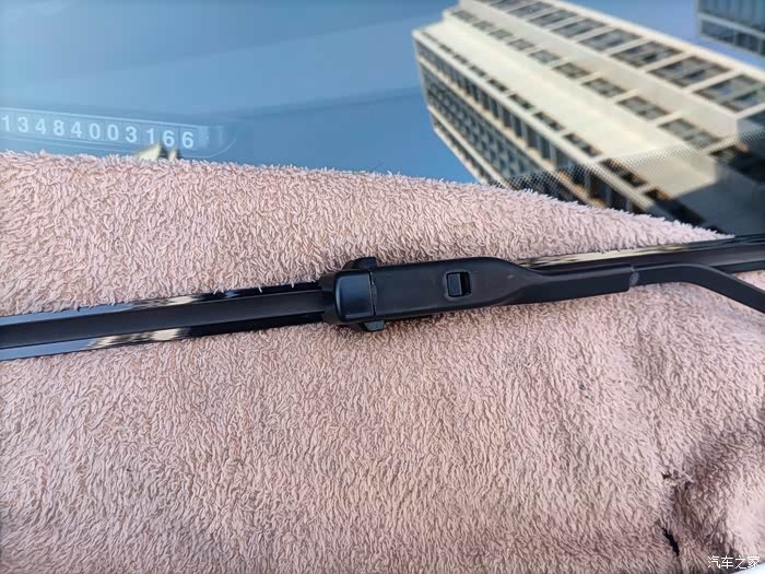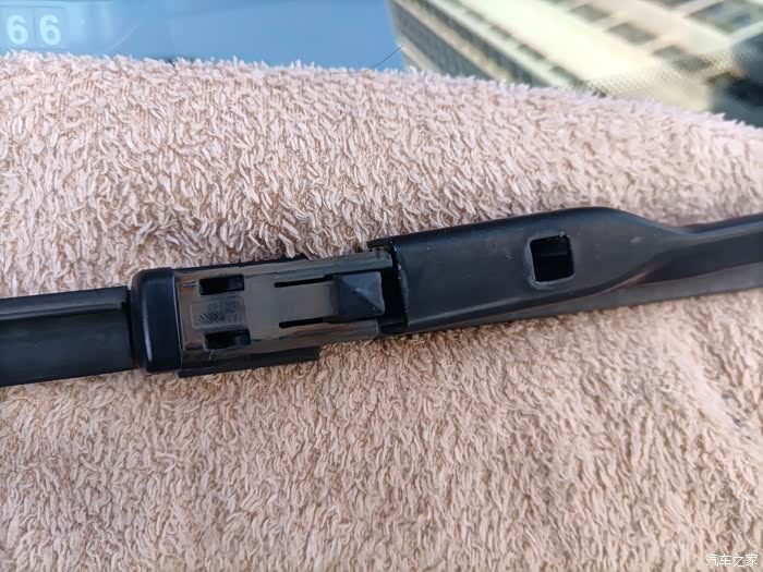 首先、先找一块毛巾放在雨刮器下面可能碰到玻璃的地方,掰起雨刮器道竖直状态,按下卡扣,拉出雨刮器。