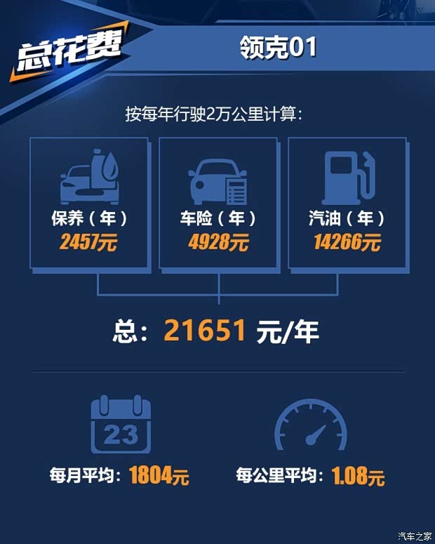 这个用车成本其实因人而异的,首先保养费2354元,车险费一年4337元,差不多固定的!浮动最大的就是一年的汽油费!我现在的油耗是10.2L/百公里左右,那也就是七七八八加起来1.2元左右的每公里的用车成本。