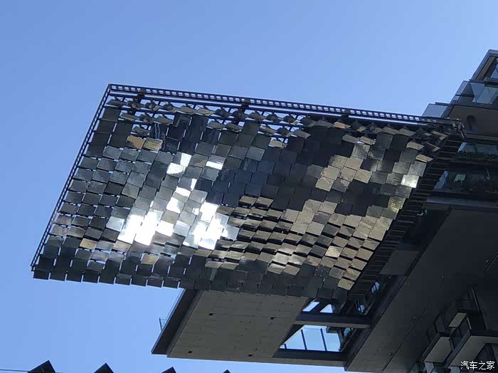 东侧塔楼处最有特色的日光反射装置,是一个延伸到 40m 之外的悬臂式结构,由 320 个固定的、机动化的红外线镶嵌板组成,用来将太阳光折射到区域内任何一个被阴影覆盖的地方。