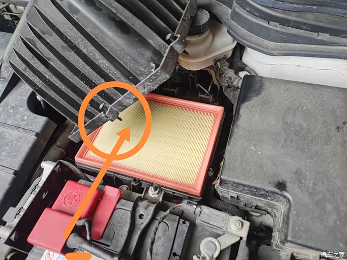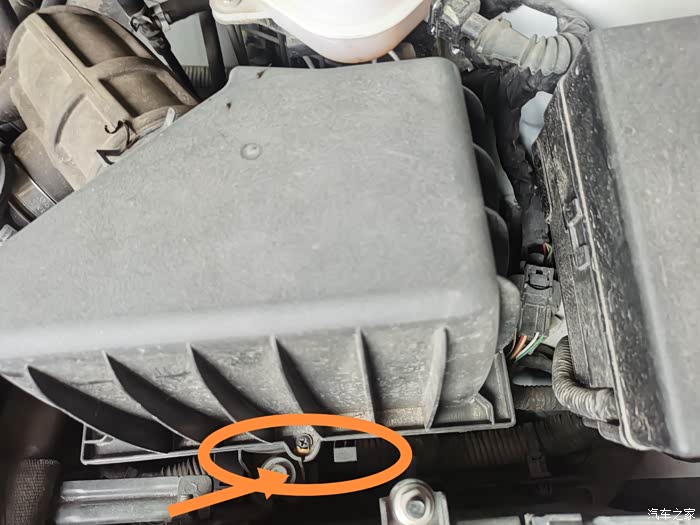 首先我们打开引擎盖,然后找到如图所示的空气滤芯盒子,看到上面标注的螺丝了吗,每个方向一个把它们拧开来。拧下来后你会发现如下图所示。那里就是空气滤芯所在了。