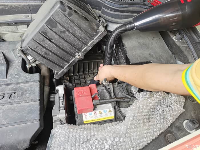 也可以看下里面卫生,适当的用吸尘器清理一下,这是不换不知道呀,里面还是很多小石头颗,怪不得有时空调吹出来会有味道,所以就拿来同事的吸尘器清理一下,这样的话空气滤芯吹出来的空调味道会好很多。
