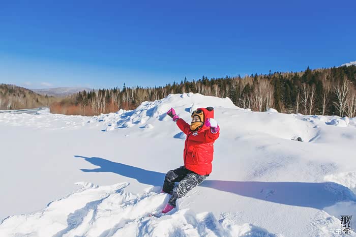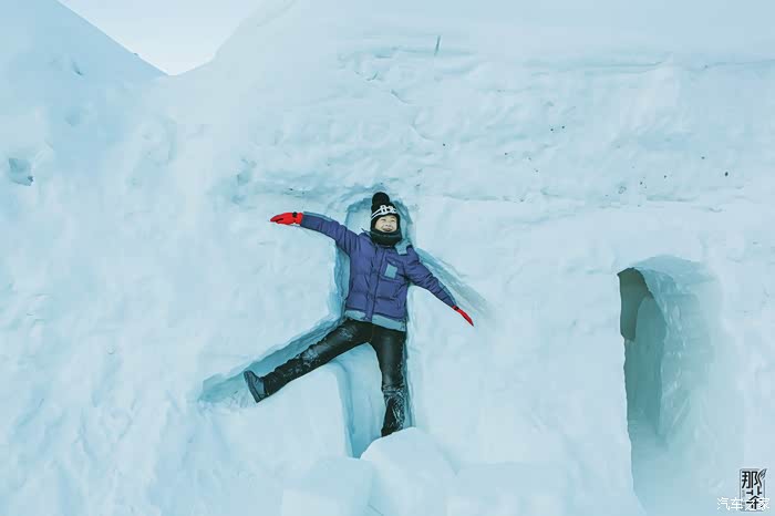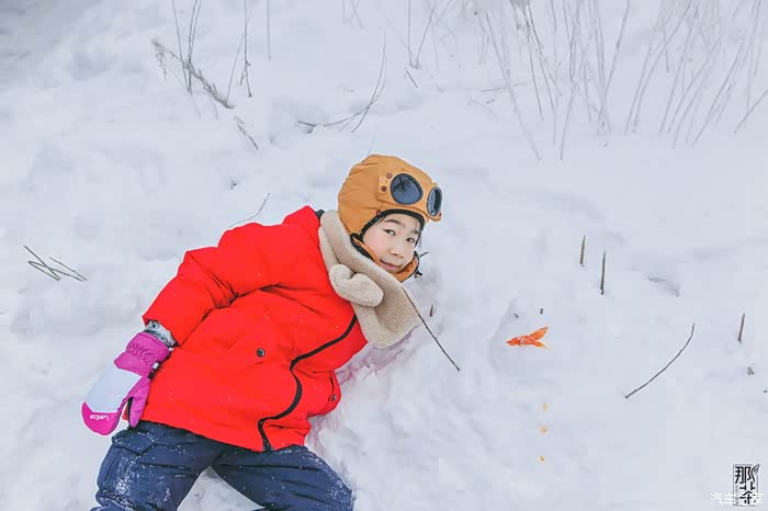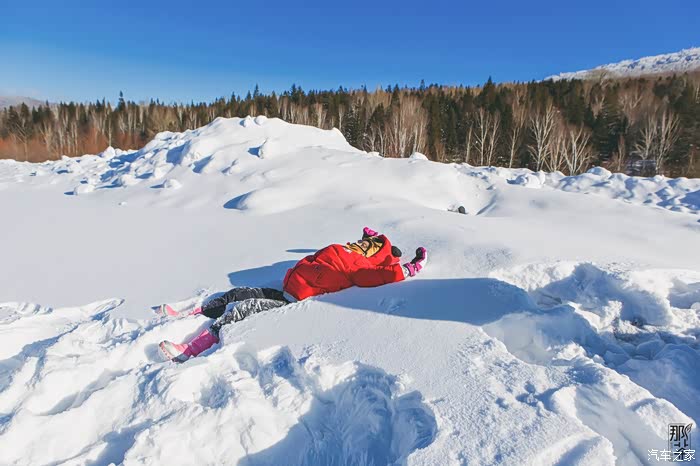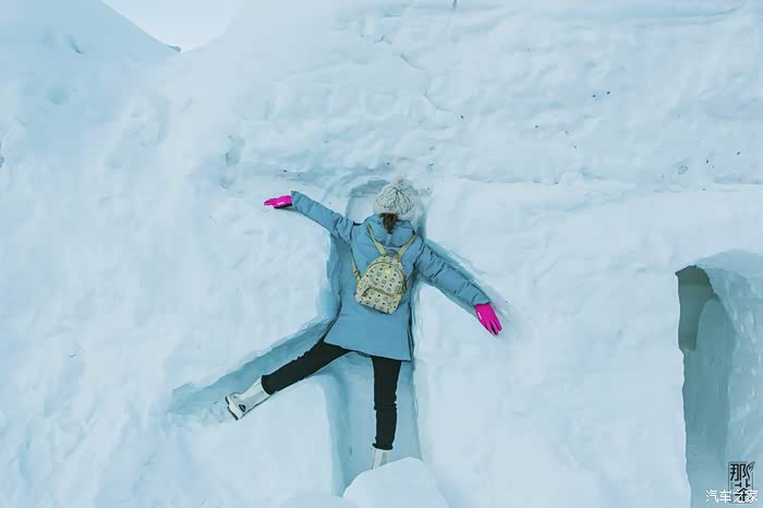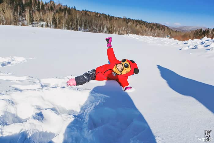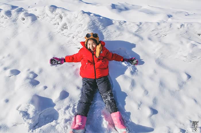 途中看到一大片洁白的雪地,停车带上Co姐去体验一下大雪过膝的感觉。对于身为南方人的我们,面对这么一片雪完全没有抵抗力,跳啊躺啊,大人的我们也开心不已。