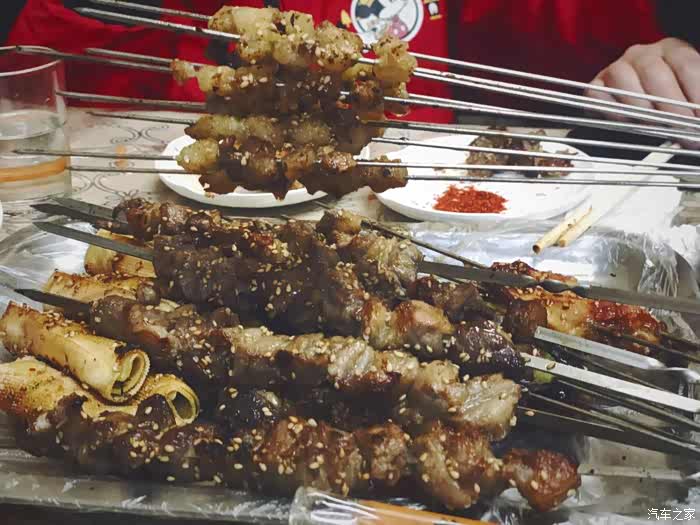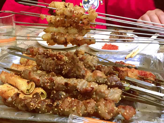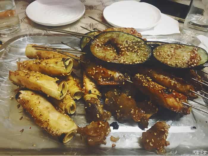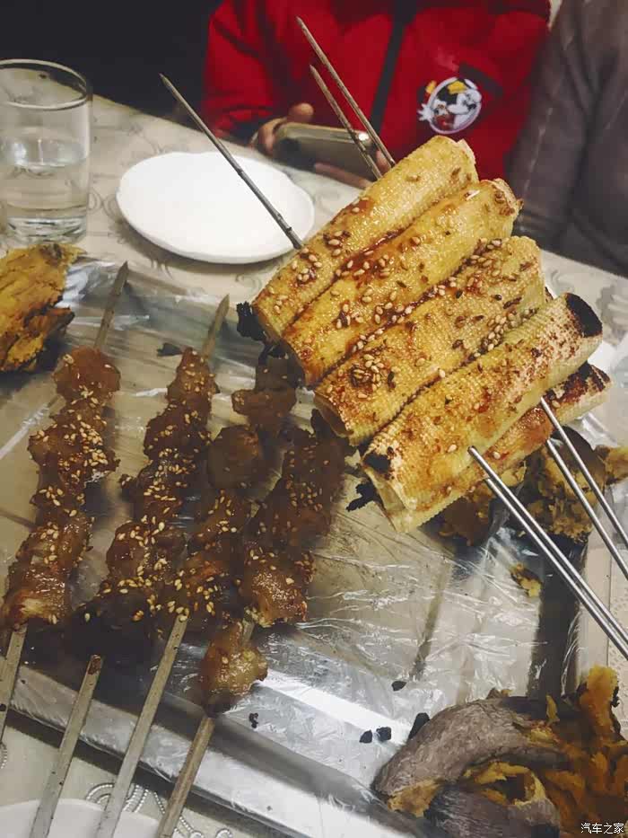 家庭小馆子,十几岁的儿子负责跑堂点菜,小伙子很健谈,有着跟年龄不成正比的老成和干练。牛肉、羊肉、胸口油、茄子、玉米还点了个百叶锅,基本上都很美味,而且烧烤上面有撒白芝麻,个人经验会撒白芝麻的烧烤基本不会差。价廉物美的东北撸串深得我们的心。