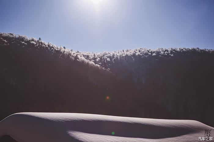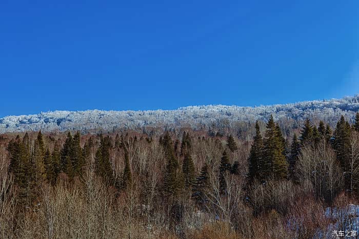 靠近身边的树还没有挂雪,山顶的还是白雪皑皑。