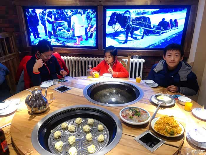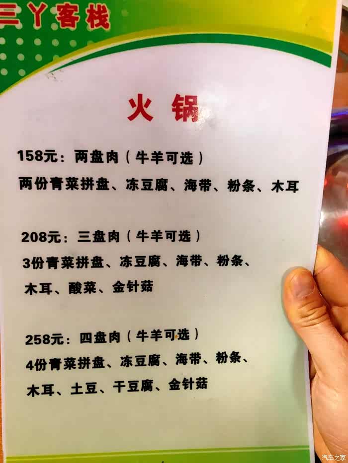 这时老板也带着客人回来了,典型的家庭客栈,老板负责接送客人,老板娘和几个姐妹负责打点客栈住宿吃饭。雾凇岛的满族很多,这里也经常能看到打着满族铜火锅的口号,这不我们晚上也要来上一顿铜火锅,点了个套餐—158,居然让我们吃不下为止,这里的食材量和价格真的是太感人了。不过吃到一半我们才发现这个铜火锅是个电热铜火锅,瞬间感觉少了那么点意思,毕竟铜火锅烧炭才是有灵魂的嘛!