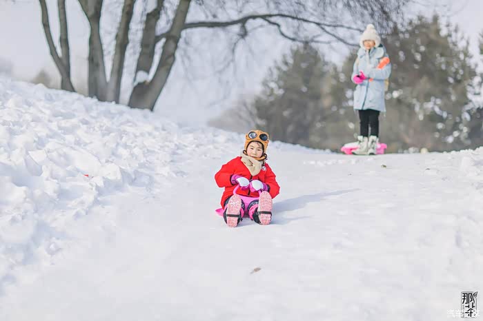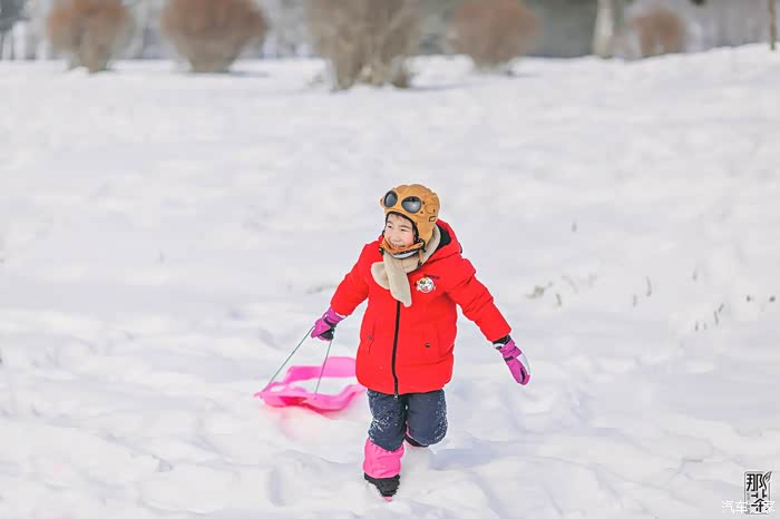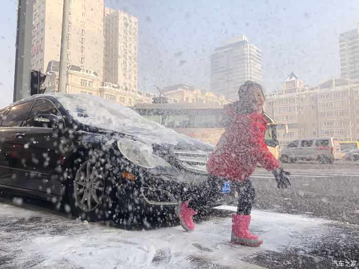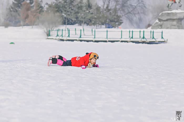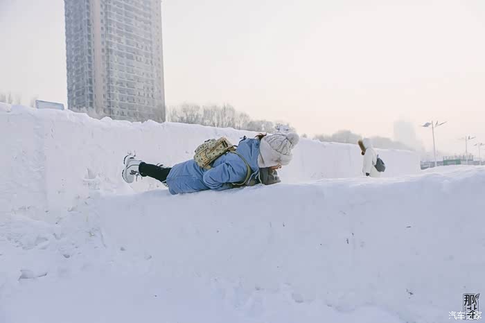 路边的雪堆,Co姐的眼神已经在发光了,及时拖离现场
