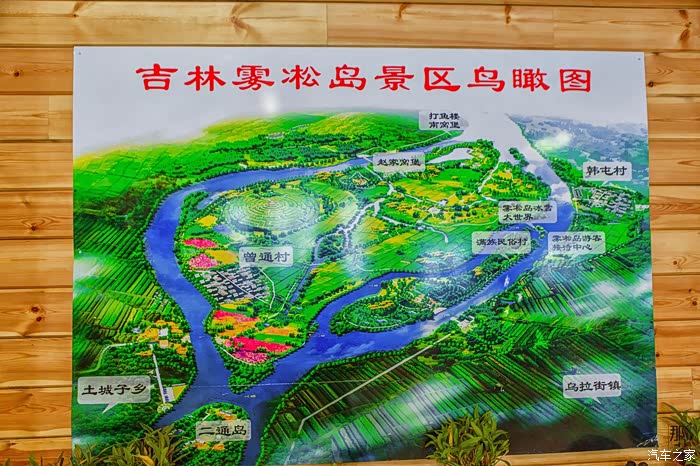雾凇岛景区鸟瞰图或者说规划图更形象,目前有的就一个满族民俗村,也就是下图的桑拿木屋