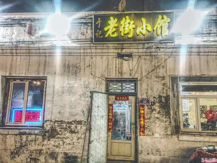 夜宵选择了烧烤,东北撸串嘛,地道而又美味。美食APP选了一家人气挺旺却很不起眼的店也在酒店不远处,步行前往。到达附近,超级隐蔽的店铺虽然找到了,但是铁门紧闭,休息!无奈边上就近选了一家,很破旧的于记老街小馆,说实话外面张望的时候里面没有什么人,奈何大晚上又这么冷我们也是硬着头皮吃点什么算什么了,本没有抱多大希望的店却给我们意外的收获,也是我们东北撸串最美味的店。