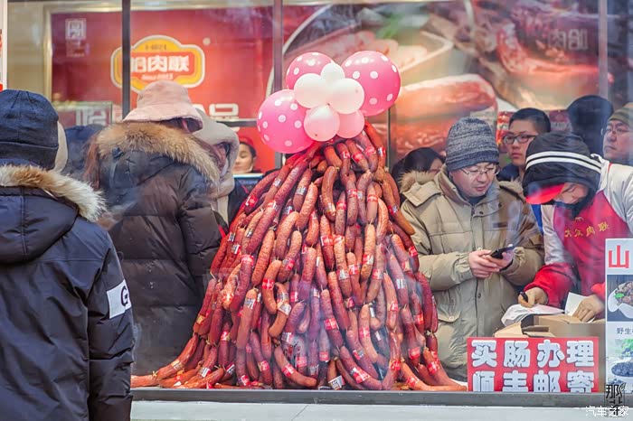 随处可见的大红肠,每家都打着手工秘制的口号,视觉效果却极其的统一